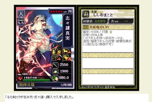 しかし影は5.5武将がいなくて石田を使っていて天を素材にして覇王をつけたばっかりだった