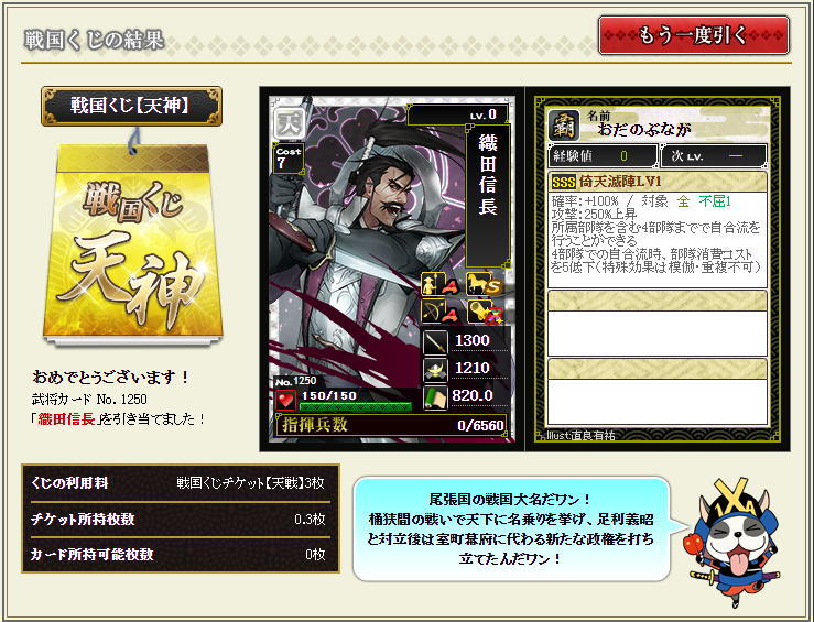 天神くじからついにあの武将が降臨