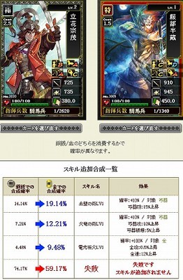 こんなに確率低いのか...。だが意を決して特武将を初めて合成素材にする。