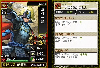 と思ったら1時間後には同じレベルの剣豪突撃あった。いくつ育ててるんだ