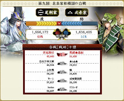 可も無く不可もない合戦でした。攻撃Pだけ達成。