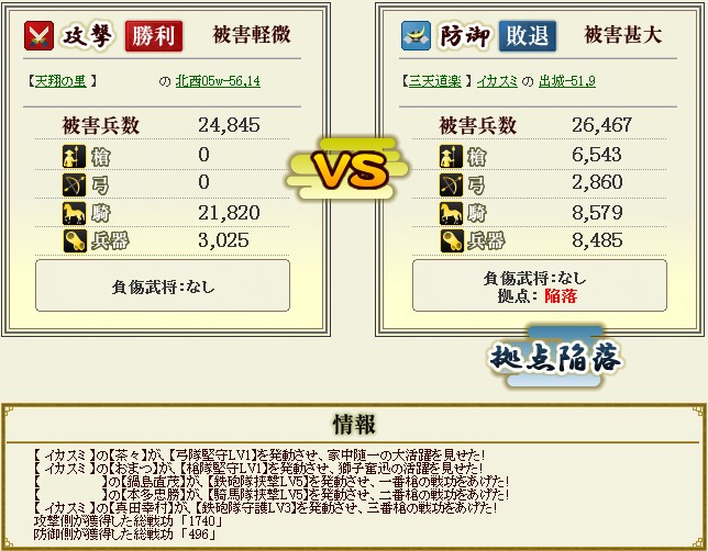 可も無く不可もない合戦でした。攻撃Pだけ達成。